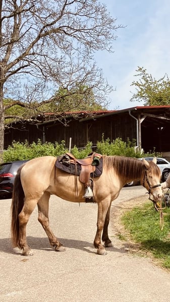 Bildschöne 7-jährige Quarab-Stute mit Papieren Unsere wunderschöne Vanity Girl (genannt Eskana) ist eine außergewöhnlich charmante und ausdrucksstarke Stute, die alle Blicke auf sich zieht – nicht nur wegen ihrer seltenen Farbe, sondern auch durch ihr sensibles, feinfühliges Wesen. Sie ist kerngesund, regelmäßig geimpft und entwurmt, läuft aktuell barhuf und ist absolut schmiede- und verladefromm. Eskana lebt in privater Haltung, wo sie sich auf der Koppel freundlich, sozial und eher rangniedrig zeigt. Sie ist angeritten und besonders gern im Gelände unterwegs. Sie reagiert unterm Sattel noch sensibel auf neue Eindrücke und benötigt kontinuierliches Training, um die Routine weiter auszubauen. Sie kennt bereits Orientierungs- und mehrtägige Wanderritte. Für ambitionierte Freizeitreiter, die Freude an der weiteren Ausbildung eines sensiblen Pferdes haben, bietet sie eine solide Grundlage. Die Entscheidung, sie abzugeben, fällt mir schwer. Dennoch habe ich erkannt, dass wir langfristig nicht optimal zusammenpassen. Eskana ist grundsätzlich sehr brav, ehrlich und leistungswillig, kann aber in unsicheren Momenten oder bei zu viel Spannung auch mal bocken oder kurz losrennen – sie benötigt daher eine erfahrene Reiterin oder einen Reiter, der sie sicher durch solche Situationen führt. Ich wünsche mir für Eskana ein liebevolles, kompetentes Zuhause, in dem sie weiter gefördert und gefordert wird – gerne im ambitionierten Freizeitbereich. Sie wird nur in allerbeste Hände abgegeben. Weitere Informationen gebe ich gerne telefonisch.