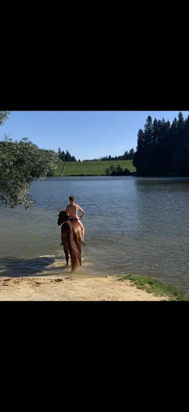 Magnifique jument Quarter Horse polyvalente – performante jusqu’à LK2, douce avec les enfants et totalement fiable Je mets en vente ma jument Quarter Horse (née en avril 2019, environ 1,60 m), issue d’Ain’t It The Blues et de Pleasure Mary. Elle est en ma possession depuis sa naissance et a été entraînée avec patience, calme et méthode pour devenir un cheval polyvalent, honnête et motivé, capable de performer dans plusieurs disciplines. ✨ Formation et succès présentée avec succès jusqu’à LK2 Futurity : performante en show Vainqueur de la foal show, 2019, haut placé au championnat des poulains à Aachen Formée dans : → Western Pleasure → Horsemanship → Trail → Showmanship Elle a également été montrée en Ranch Riding, où elle a également fait preuve de beaucoup de talent. Très volontaire, fine à monter et toujours motivée, elle nécessite un cavalier juste, sensible et expérimenté. Caractère et usage quotidien Extrêmement douce en main et sous la selle. Très amoureuse des enfants, elle a été montée et présentée en concours par des enfants. Très sociable et sincère. Facile à charger (montée seule dans le van possible à tout moment). Sûre en carrière et au quotidien. Connaît les chiens et autres animaux. En extérieur, elle est très fiable, part seule en balade sans souci, et s’adapte à tout : baignade dans un lac, trail extrême, etc. Hébergement Élevée en box paddock avec sortie quotidienne. Très sociable, avec un rang moyen dans la troupe. Je la vois idéalement dans un mode de vie où elle peut se déplacer librement, par exemple dans un petit paddock d’extérieur. Entraînement à la longe Travail au sol solide et travail en liberté. Connaît la double longe. Entraînement régulier, notamment avec Lara Tauer (Mustang Makeover). Elle exécute toutes les figures de base à la longe, peut être rappelée, faire des épaules en dedans, le pas espagnol, galoper à la longe. Elle a commencé à piaffer de façon ludique. ❤️ Santé PSSM2 n/P2 (porteur asymptomatique) – sans symptômes. Fracture du grasset complètement guérie (radiographies disponibles). Pour qui est-elle adaptée ? Un cheval idéal pour : → Cavaliers amateurs et de loisir ambitieux → Jeunes et enfants → Cavaliers à la recherche d’un cheval polyvalent et fiable. Ce n’est pas une monture pour la compétition sous pression, mais pour ceux qui montent avec sensibilité et apprécient ses qualités. Autres informations Montée pieds nus ou ferrée. Accessoires complets disponibles à l’achat. Je la cède uniquement pour des raisons de santé (personnelles). C’est un cheval qui occupe une place très spéciale dans mon cœur, et je ne le vends que si tout est en ordre. Je souhaite qu’elle trouve un endroit où elle sera encore choyée et valorisée. Plus de photos et vidéos sont disponibles et je les envoie volontiers en cas d’intérêt sérieux.