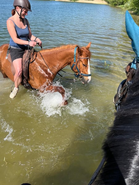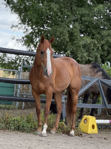Aus Zeitmangel Verkaufe ich meine unverbrauchte American Quarter Horse Stute. Eckdaten zum Pferd: Boston Rose O Lena American Quarter Horse Stute Fuchs geboren am 05.07.2017 Ca 1,47cm Barhuf PSSM: N/N HYPP: N/N HERDA: N/N GBED: N/N MH: N/N Vater: General Jac O Lena Mutter: RM Boston Yackys Mac Rose ist angeritten, hauptsächlich im Gelände, aber seit fast einem Jahr nicht mehr wirklich im Training, die letzten 4 Monate gar nicht mehr. Sie lebt im Offenstall in einer gemischten Herde und ist dort eher ranghoch. Typisch Stute muss bei ihr auch klar geregelt sein wer der Chef ist und sie braucht eine konsequente Führung. Rose ist ein Pferd, dass kontinuierliche Arbeit braucht, dann lässt sie alles mit sich machen und hat Spaß an der Arbeit. Kein Anfängerpferd, nicht für Schulbetriebe geeignet.