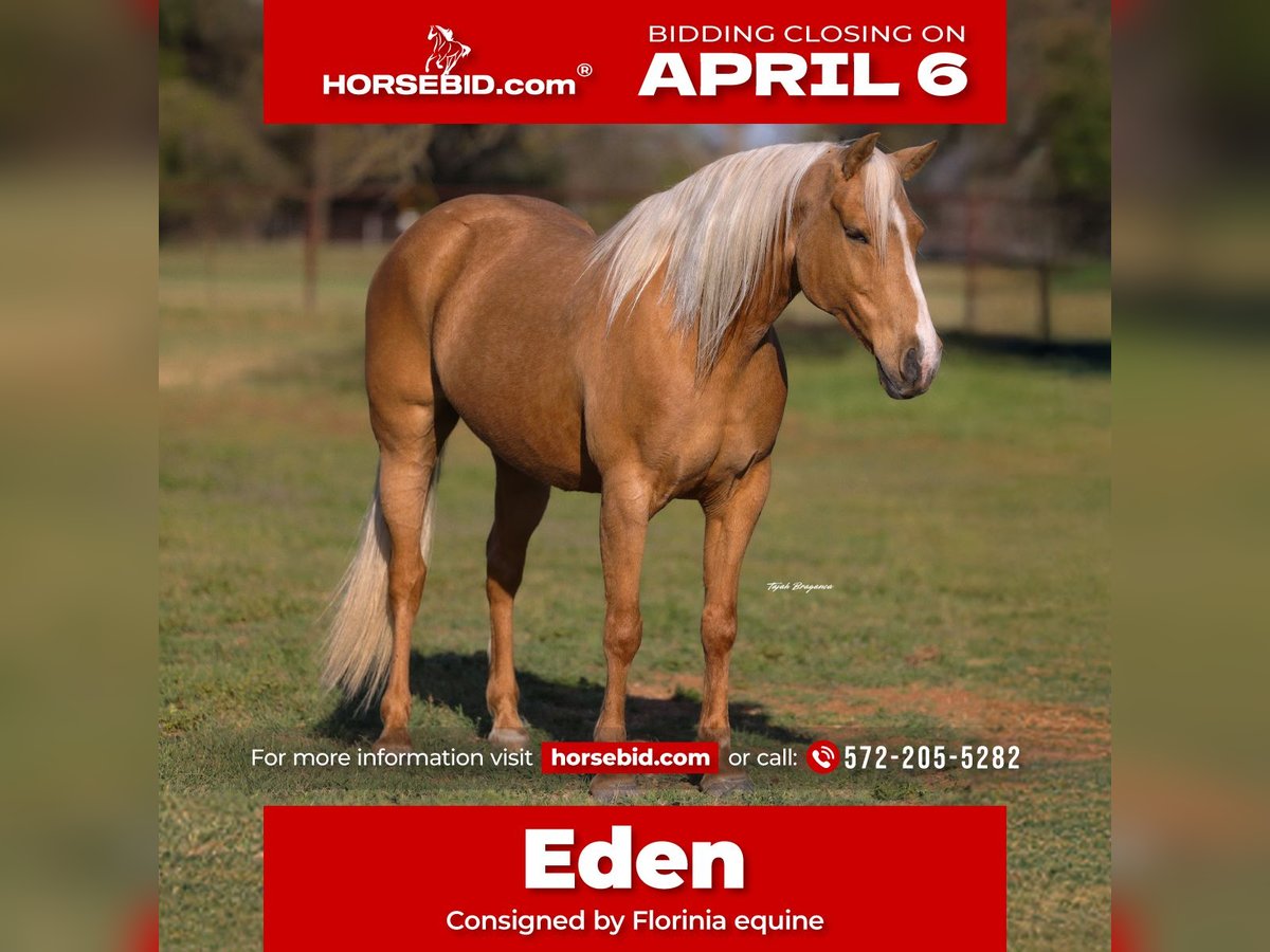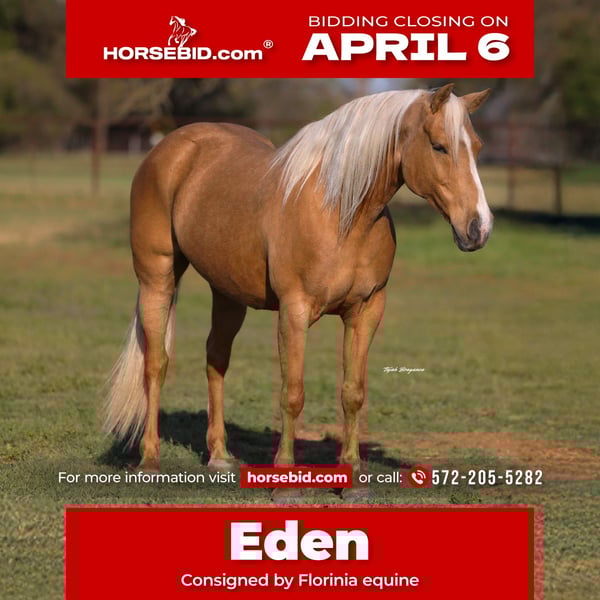 🌟𝑨𝒑𝒓𝒊𝒍 𝐀𝐋𝐋 𝐒𝐓𝐀𝐑 𝐋𝐈𝐍𝐄𝐔𝐏🌟 Happening now thru MONDAY | APRIL 6th - Available EXCLUSIVELY on HorseBid's website! For more details and to register visit: www.Horsebid.com CONSIGNOR CONTACT: Florinia equine 572-205-5282 LOCATION: Edmond, OK BREED: Aqha REGISTERED: No COLOR: Palomino HEIGHT: 15 AGE: 9 GENDER: Mare Eden is a 9-year-old palomino mare that absolutely shines with her rich golden color, long flowing mane and tail, and overall eye-catching presence. She is the kind that turns heads wherever she goes and has the kind of mind that makes her a true asset to any program. Eden is very gentle and the definition of a safe, family-friendly mare. She is kid and youth safe, with a kind, willing attitude and no nonsense. She is honest every ride with no buck, kick, bite, or rear, making her a dependable choice for riders of all levels. She has a great foundation and plenty of real-world experience. Eden has been ridden in parades and grand entries, showing her ability to handle busy, high-energy environments with confidence and ease. She has also been shown in ranch trail classes, participated in local 4H shows, and competed in cowboy extreme trail challenges, proving her versatility and steady mindset. On the ranch, Eden has been used and has some roping experience at home, adding to her overall usefulness and well-rounded background. She is the kind you can enjoy in the arena, take down the trail, or put to work when needed. Eden is the type of mare that is honest, broke, and safe, with the looks to match. If you’re looking for a flashy, golden palomino that the whole family can enjoy, she is one you won’t want to miss.