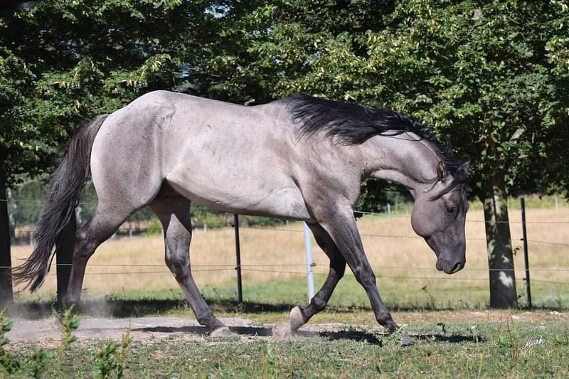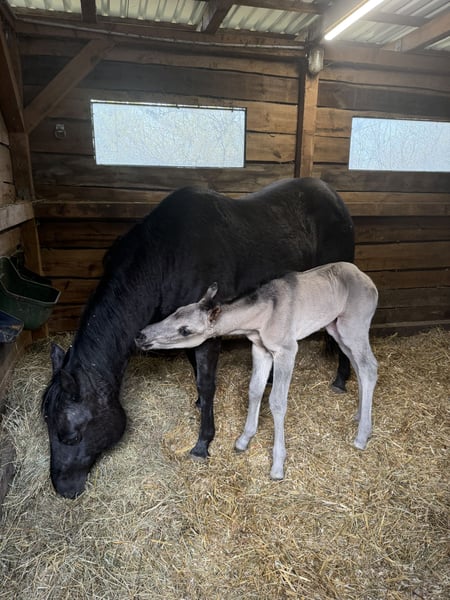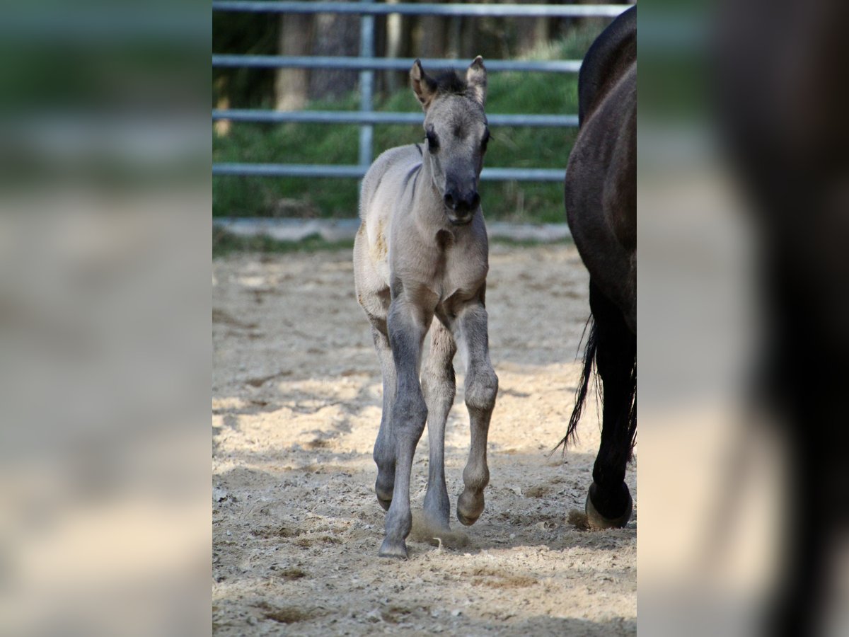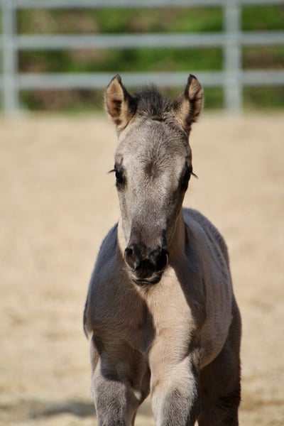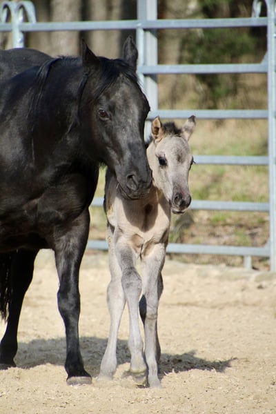 Am 20.03.2026 wurde diese wirklich typvolle und große Quarter Horse Mädchen geboren ❤️ - Quarter Horse Stutfohlen - geboren 20.03.2026 - grullo ( homozygot ) - 6 Panel n/n Ratenzahlung möglich! „ER Oakie‘s Silver Gipsy“ überraschte uns alle mit ihrer beeindruckenden Größe und lässt erahnen was ihre Mama geleistet hat! Bereits bei ihrer Geburt,musst sie ein Stockmaß von über einem Meter und auch der Rest ihres Fundaments ist wahrlich beeindruckend…große kräftige Gelenke, starke Beine,ein wunderschönes Köpfchen und eine edel wirkende Fellfarbe! Auch ihr Interieur überzeugt…mutig,aufgeschlossen und gibt schon jetzt gerne Vollgas! Hier erwirbt man den Ursprungstyp….kurz,kräftig,schnell,wendig und ein geschätztes Endmaß von ca 150cm ☺️ „Gipsy‘s“ Papa, „Oakie Silver Dust, stammt von der „Shining Grullo Ranch“ aus Texas und hat uns vom ersten Moment an überzeugt…er bringt ein tolles Allround Pedigree mit und lässt seiner Tochter somit alle Sparten offen! Ihre Mama „BD Shari Shining Bar“ ist seit einigen Jahren fester Bestandteil unserer Zucht und sie überzeugt täglich mit ihrem unkomplizierten und verschmusten Wesen…ihre tollen Eigenschaften gibt sie stabil an ihre Fohlen weiter! Sie weißt ein tolles Pedigree vor und vereint viele Cutting und Reining Legenden auf ihrem Papier wie zum Beispiel " Fritz Power ", " Doc Bar " , " King ", " Doc Olena " usw.. In ihrem Pedigree finden sich einige Pferde der Hall of Fame was sie für uns zu einem echten Juwel macht! www.east-ranch-poa.de die letzten Bilder zeigen den Papa