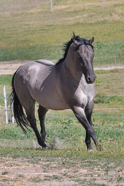 jument Quarter Horse, née en 2026, gris foncé avec des reflets grullo