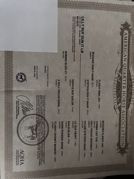 Zu reservieren für Januar 2026. Wunderschöne AQHA PP Stute, geboren am 8. Juni 2014. Sehr menschenbezogen, lässt sich gut händeln. Beide Eltern sind aus der Reining-Zucht (Papier auf dem Foto). 6 negative Panels.