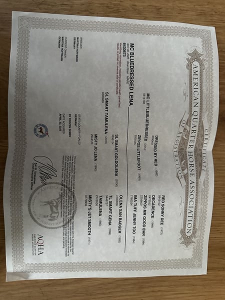 Súper dulce yegua Quarter Horse "Fine" está a la venta. Fine nació el 30 de abril de 2025. Es muy segura de sí misma y muy curiosa. Se deja llevar muy bien, incluso en el tráfico es segura. También se maneja muy bien en el transporte en tráiler. Sus padres son caballos muy sociables, ambos son 100% fiables en el campo. El padre de Fine, Gino, compite con mucho éxito en deportes ecuestres. Los abuelos de Fine son todos caballos de competición exitosos en el pasado, todos con un carácter increíblemente bueno.