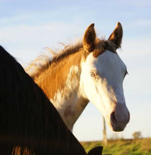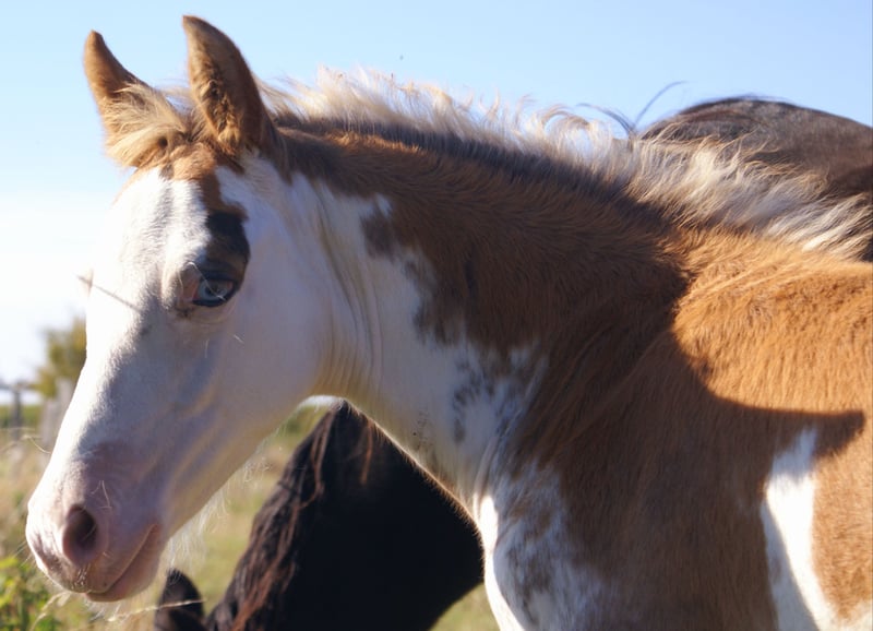 In auffälliger chestnut overo Optik präsentiert sich dieser Hengstjährling mit 2 blauen Augen, Vater: Paint, Kingsley n jills wood, Mutter: Deutsches Reitpony, von Boss jr., das Fohlen hat volle Papiere, wüchsig, fröhlich, besonders