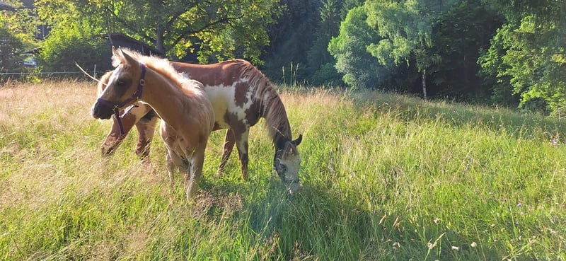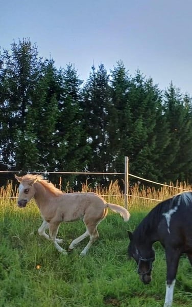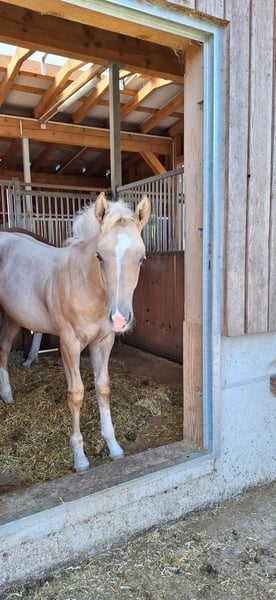 For sale is our beautiful, healthy colt - SUNNY. Character: - Alert, curious, and people-oriented - Already shows impressive calmness - Very social within the herd - Learns quickly and is extremely attentive Development & Health: - Healthy development - Regular veterinary care - Vaccinated and dewormed according to schedule Raising & Keeping: - Lovingly raised in a family atmosphere - Daily interaction with children - Species-appropriate housing with plenty of space - Daily turnout in the herd What we offer: - All papers and health certificates - Opportunity to get to know him on-site - Insight into the loving upbringing We are looking for: A responsible family or experienced horse people who can give our colt the time and attention he needs for his optimal development. Only to the best hands! If you are seriously interested, we look forward to your contact.