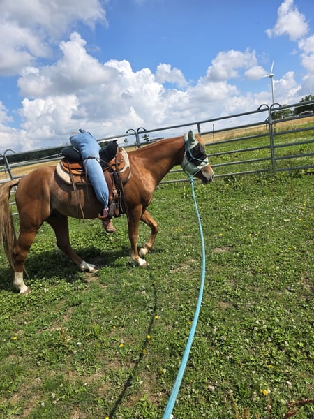 Verkaufe Quarter Pony Wallach – Perfekt fürs Western und Freizeitreiten ! Zum Verkauf steht ein wunderschöner Quarter Pony Wallach, geboren im Jahr 2022. Er ist ein kleiner Charmeur und mit seinem hübschen Gesicht und seinem einzigartigen Rabicano Fell ist er ein echter Blickfang. Er hat einen harmonischen Körperbau, gute passende Hufe. Das Pony hat ein Stockmaß von 135,5 cm und eignet sich ideal für den Freizeitbereich. Mit weiterer Ausbildung kann Fritz ein tolles Jugend und Kinderpony werden. Ruhe und Nervenstärke hat er für sein junges Alter schon gut angelegt. Er lässt sich von meinen Kindern putzen, führen und kuscheln. Fritz ist verladefromm, steht super bei der Hufpflege, lässt sich anbinden, putzen, satteln und longieren. Auch fremde Umgebungen bereiten ihm keine Probleme. Er ist sozial, verspielt und einfach ein sympatisches Jungpferd. Er war schon mehrfach als Handpferd im Gelände, auch spazierengehen allein kennt er schon. Die ersten Schritte unter dem Reiter hat er auch schon gemacht. Er ist freundlich, gut im Umgang und kennt die Grundlagen im Umgang mit Menschen. Aufgrund seines jungen Alters ist er bestens geeignet für erfahrene Reiter, die ein charmantes Pony für die Freizeit suchen. Bei Interesse oder für weitere Informationen stehe ich gerne zur Verfügung!