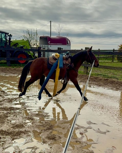 For sale is a gelding born in spring, currently three years old, with no known pedigree. He stands approximately 14.1 hh and has a solid, compact build. He has already been well-grounded and prepared for riding (due to his age, he has not yet been backed). He rides calmly with saddle and bridle, and is comfortable with objects on his back. We have also ridden him several times in double longeing. He is quite laid-back and relaxed, making him a great leisure partner or suitable for someone with ambitions. He is very sociable in a group setting and is familiar with both open stalls and box stalls. In handling, he is very easygoing and cooperates well with everything. No known illnesses or allergies. A health check (AKU) can be arranged if desired. A trial ride costs €35, which will be credited towards the purchase if the horse is bought. Please call or message us at 0157 36803742. All information is provided without guarantee. Subject to price changes. Transport can be arranged. Online purchase possible.