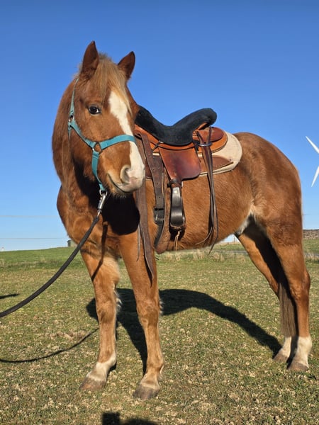 Verkaufe Quarter Pony Wallach – Perfekt fürs Western und Freizeitreiten ! Zum Verkauf steht ein wunderschöner Quarter Pony Wallach, geboren im Jahr 2022. Er ist ein kleiner Charmeur und mit seinem hübschen Gesicht und seinem einzigartigen Rabicano Fell ist er ein echter Blickfang. Er hat einen harmonischen Körperbau, gute passende Hufe. Das Pony hat ein Stockmaß von 135,5 cm und ist derzeit leicht überbaut, da noch im Wachstum Er eignet sich ideal für den Freizeitbereich, sowie für Turniere im Einsteigerbereich. Mit weiterer Ausbildung kann Fritz ein tolles Jugend- und Kinderpony werden. Ruhe und Nervenstärke hat er für sein junges Alter schon gut angelegt. Er lässt sich von meinen Kindern putzen, führen und kuscheln. Fritz ist verladefromm, steht super bei der Hufpflege, lässt sich anbinden, putzen, satteln und longieren. Auch fremde Umgebungen bereiten ihm keine Probleme. Er ist sozial, verspielt und einfach ein sympatisches Jungpferd. Er war schon mehrfach als Handpferd im Gelände, auch spazierengehen allein kennt er schon. Die ersten Schritte unter dem Reiter hat er auch schon gemacht. Preis steigt mit weiterer Ausbildung. Er ist freundlich, gut im Umgang und kennt die Grundlagen im Umgang mit Menschen. Aufgrund seines jungen Alters ist er bestens geeignet für erfahrene Reiter, die ein charmantes Pony für die Freizeit suchen. Bei Interesse oder für weitere Informationen stehe ich gerne zur Verfügung!