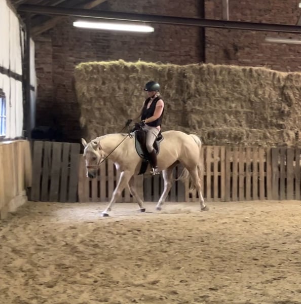 Benji is looking for a new home. He is a 5-year-old Quarter Horse without papers. A green equine passport is available. He has been ridden in the basic gaits and is ready to discover more of the world. He is a cool character, but he needs the security of a person. Therefore, in my opinion, he is not a beginner's horse. I am selling him on behalf of someone and currently training him. He is familiar with box and open stable housing and gets along well in a herd.