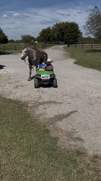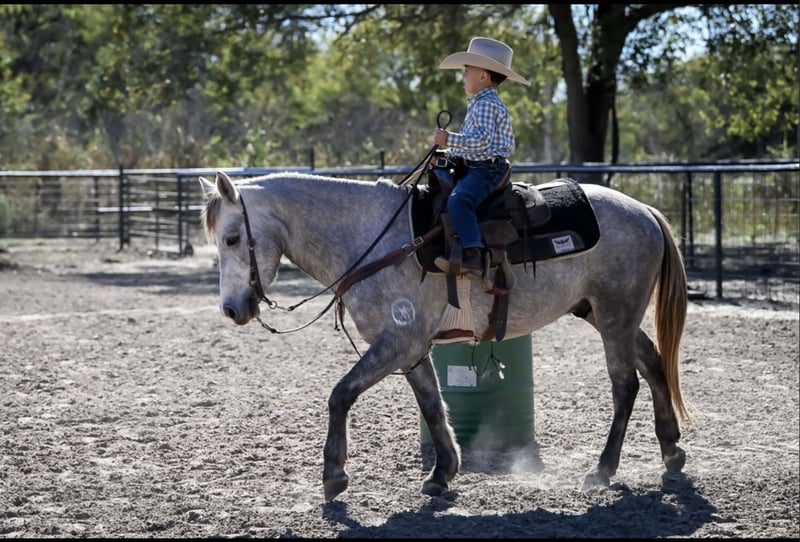 🎁 𝐈𝐍 𝐓𝐈𝐌𝐄 𝐅𝐎𝐑 𝑪𝒉𝒓𝒊𝒔𝒕𝒎𝒂𝒔 🎁 Happening now thru TUESDAY | DECEMBER 9th - Available EXCLUSIVELY on Ponybid's website! For more details and to register visit: www.Ponybid.com CONSIGNOR CONTACT: Sandollar Farms 678-818-9682 LOCATION: Checotah, OK BREED: Quarter Pony REGISTERED: No REGISTERED NAME: Wally COLOR: grey HEIGHT: 13.2 AGE: 6 GENDER: Gelding All Around Handy Ranch & Rodeo Gelding If you’re looking for one that can go from the ranch to the rodeo, Wally is your guy. This 6-year-old grey gelding stands 13.2 hands, built strong and shapely with plenty of bone, muscle, and heart Wally is started nicely in the roping pen and on the barrels, showing tons of natural talent and try. He’s been used for all kinds of ranch chores: sorting, gathering, doctoring, and checking fences. He’ll open and shut gates, cross creeks, handle rough country, and drag a calf if needed. This little gelding knows what a day’s work is and stays gentle every step of the way. He rides outside quietly, handles time off with ease, and stays gentle no matter how often you swing a leg over. Whether you’re looking for a trusty ranch mount, a junior rodeo partner, or a safe family horse, Wally checks every box. Wally rides outside like a veteran, and he’s easy to catch anywhere. He loads, hauls, and bathes without a fuss. He stands great for the farrier, sports four strong black hooves, and has never needed shoes. He’s the perfect size for youth riders or adults who appreciate a handy, athletic gelding. Whether you need one to cover country, help the crew, or give your kid a leg up in the rodeo arena, Wally’s ready to go to work. Wally sells 100% sound, gentle, and blemish free. Don’t miss this opportunity to own a true all-around gelding that’s safe, sound, and ready to go any direction you choose.