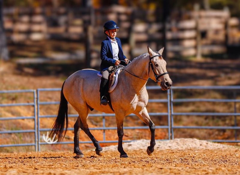 🎁 𝐈𝐍 𝐓𝐈𝐌𝐄 𝐅𝐎𝐑 𝑪𝒉𝒓𝒊𝒔𝒕𝒎𝒂𝒔 🎁 Happening now thru TUESDAY | DECEMBER 9th - Available EXCLUSIVELY on Ponybid's website! For more details and to register visit: www.Ponybid.com CONSIGNOR CONTACT: Rockin W Ponies • Double R Ranch Rachel Vick LOCATION: Lyles TN BREED: Quarter Pony REGISTERED: No COLOR: Buckskin HEIGHT: 52” AGE: 7 GENDER: Gelding Meet Gus! The most incredible buckskin gelding who checks every dream pony box from the moment you see him. At 7 years old and standing 52”, he is the perfect combination of quiet kindness mixed with talent and ability. He is extremely well-broke and rides just like a big horse with real handle, real training, and real feel. He has everything it takes to be the PERFECT all around pony for your child, whether you need a babysitter or a step up pony for your kiddos to excel with and move to the next level, no matter the discipline! He is also big enough to carry a smaller adult, no problem. Gus is as kind and kid-loving as they come. Easy to catch, gentle for little hands to groom, stands quietly for the farrier and vet, loves attention and an occasional snack! He is polite, patient, steady, and the same every ride. With his old soul, and his gentle confidence building nature- it’s easy to see why parents have trusted Gus to help teach their beginners how to ride! Under saddle, Gus is the kind of pony parents dream of finding. You can saddle him, hand the reins to your child, and feel comfortable. He is steady, quiet, dependable, and adjusts perfectly to his rider. He will poke along for timid kids, ride alone or in a group, cross water, step over logs, and stay level headed. When a more advanced kid climbs on, he becomes more responsive, athletic, and ready to work which makes him a rare pony who will grow with your children instead of being outgrown! Gus is extremely well broke and rides with the training of a seasoned ranch horse. He spins, neck reins, moves off your leg, and rides very correct and honest. He has been a turn back pony for cutting and works confidently in sorting and team penning as well. Gus is also an excellent roping pony and has done heeling and steer stopping. He enjoys going after a cow, and will pin his little ears and put his rider right where they need to be. He runs a neat and clean barrel pattern and will settle right back down to any pace if you need him to trot or slow lope the pattern. He is also a wonderful little English pony who jumps willingly, stays balanced, and is easy to guide and ride. He’s so responsive, and watching him trot around neat and proper, will make you smile big. He is truly THE coolest pony and you won’t find any so versatile and genuinely talented at everything! Our buddy Gus is the kind of pony families keep for a lifetime. If Wade didn’t already have a pony this size- Gus would not be for sale. Set your kids up for success with a beautiful buckskin unicorn!! He sells 100 percent sound with a recent clean PPE performed by Dr. John Laster DVM of Todd County Animal Clinic which will be included at the end of the pictures. Located in Lyles TN. Nationwide shipping available- we are happy to help arrange transport. With the recent outbreak of EHV-1, Gus is more than welcome to remain with us until it’s deemed safer to travel! We are also happy to hold Gus here for Santa until Christmas, free of charge! For more information or to schedule a visit, contact Rachel Vick at 931 623 1706.