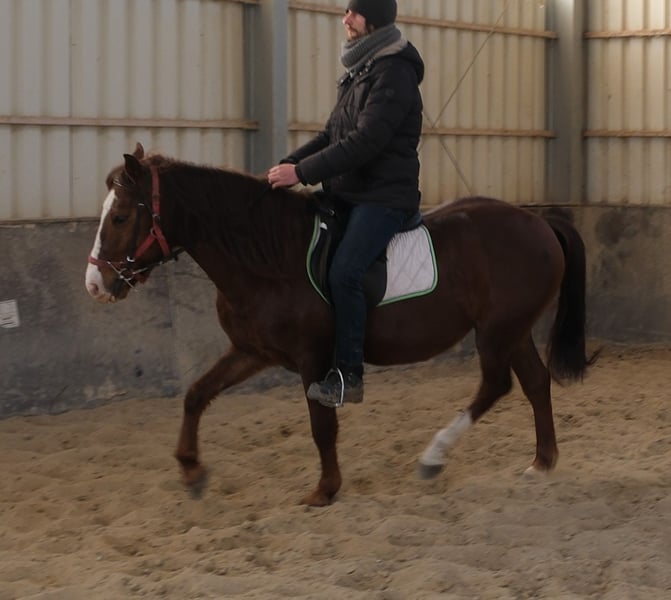 Einfacher,unkomplizierter Wallach,brav im Umgang und problemlos zu reiten. Sicher im Straßenverkehr und Gelände. Rio ist auch einspännig gefahren. 8 Jahre, 145cm Bei Interesse bitte anrufen, keine Mail! Für eventuell auftretende Fehler in der Beschreibung gilt keine Gewähr! Tel.: 0173-3843407 Da es sich um ein lebendes Tier handelt, sind dies subjektive Eindrücke des Anbieters und keine zugesicherten Eigenschaften des Tieres! Ständig schöne Fahr-u.Freizeitpferdesowie neue Kutschen verschiedener Modelle preiswert im Angebot. Anschrift Stall: 99628 Buttstädt, Oberwendenstraße 39