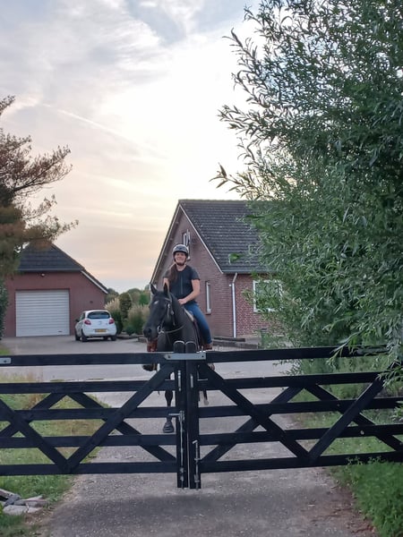 Ozzie is door mijzelf gefokt, uit mijn polomerrie (Criollo Volbloed mix, geen stamboek) en de quarter hengst Don Quixote Escapes (quarter horse # 3936276, eigendom van de Eifel Gold Ranch, dekbewijs en performance record van vader aanwezig, kan ik sturen op aanvraag). De laatste foto's bij deze advertentie zijn van deze hengst. Hij is nu een aantal jaar onder het zadel (ik ben begin 2022 begonnen met inrijden), en is een lief allround rij- en knuffelpaard om nog een leven lang plezier mee te hebben. Helaas door tijd en interesse gebrek kom ik er niet aan toe hem te geven wat hij nodig heeft en eruit te kunnen halen wat er wellicht in zit. Hij is bitloos ingereden maar wordt nu meestal met bit gereden, kent dus beide. Hij heeft veel verschillende omgevingen gezien tijdens de vele buitenritten die we gemaakt hebben (strand, bos, dorp, duinen, water, trektocht, etc). Hij is verkeersmak, niet bomproof, wel koel in het hoofd. Cowboy trail trainingen mee gedaan en wat basis western, is al een tijd geleden maar kan gemakkelijk opgepakt worden. Hij is (nog) niet voor onervaren of onzekere ruiters geschikt. Hij staat bij mij 24-7 in de groep met weide en grote schuilstal, is op zoek naar een zelfde soort goede plek. Hij is goed bij de smid, op de trailer, en in de omgang. Kerngezond, ieder jaar bij tandarts geweest (symmetrisch uitgelijnd) en regelmatig bekapt, altijd 24-7 in beweging geweest en in een kudde gestaan, altijd zonder beperking hooi gevoerd (slowfeeders) icm weidegang. Nooit hoefbevangen geweest.