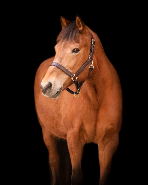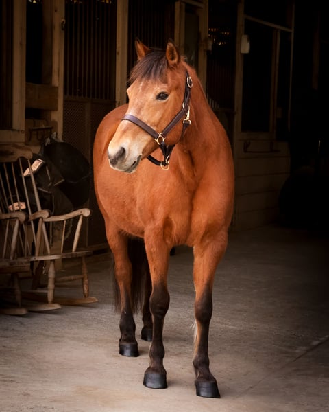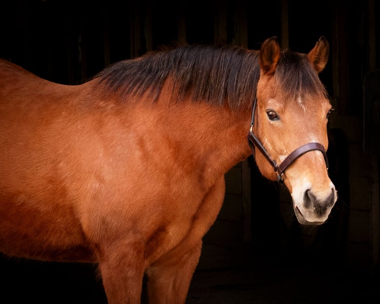 Holly, une jument Quarter Pony baie de 14 ans, mesurant 14,1 mains.