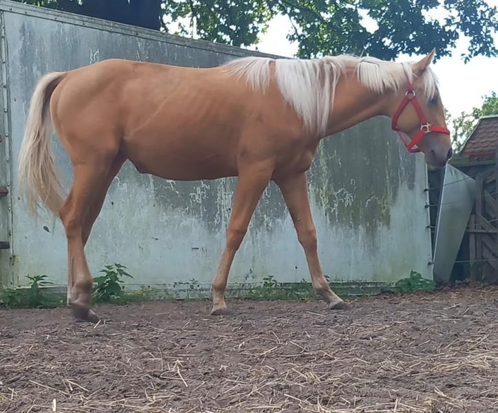 Babypferd – Quarterhorse Stute, geboren 2024 Zum Verkauf steht eine junge, reinrassige Quarterhorse Stute, geboren im Jahr 2024. Die Stute ist noch roh und konnte bisher keine Ausbildung genießen – somit bietet sie die perfekte Grundlage für eine individuelle Förderung und Ausbildung nach eigenen Vorstellungen. Es handelt sich um ein liebes, dem Alter entsprechend neugieriges Jungtier mit viel Entwicklungspotenzial. Durch ihre ruhige Art eignet sie sich ideal für erfahrene Pferdemenschen, die Freude daran haben, ein Pferd von Grund auf aufzubauen. Details: • Rasse: Quarterhorse (reinrassig, ohne Papiere) • Geschlecht: Stute • Geburtsjahr: 2024 • Stockmaß: ca. 1,50 m – 1,55 m (geschätzt im Endmaß) • Ausbildungsstand: roh • Abstammung: nicht bekannt / ohne eingetragene Papiere • Besonderheit: Nabelbruch vorhanden Der Nabelbruch beeinträchtigt die Stute aktuell nicht im Alltag, sollte jedoch bei weiterer Planung berücksichtigt werden. Die Stute wächst artgerecht auf und kennt den Umgang mit Menschen. Weitere Informationen gerne auf Anfrage. Bei ernsthaftem Interesse freuen wir uns über eine Nachricht.