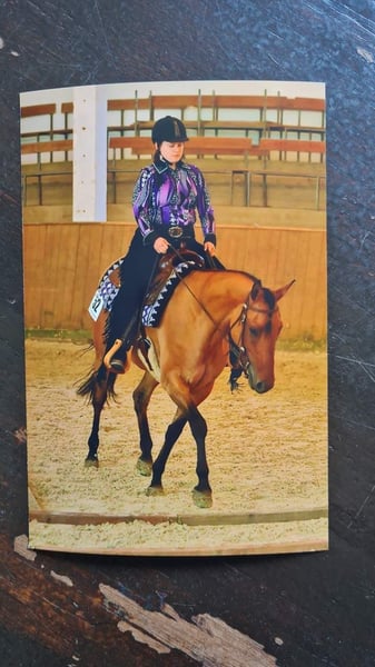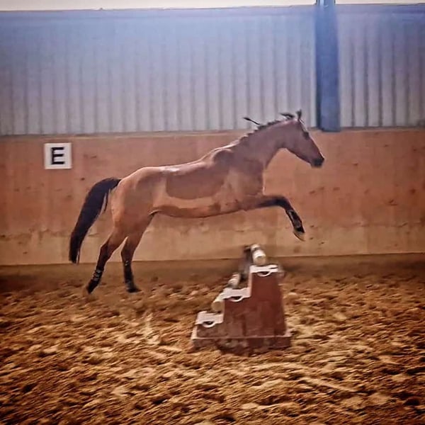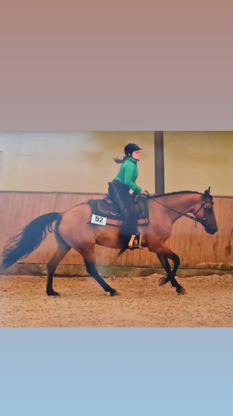 Quarterponystute, *2018, 156cm, Traumfarbe Dun, ZSSE Pass, regelmäßig Geimpft und beim Zahnarzt, Hufschmiede und Verladefromm. Arya hat eine solide Grundausbildung vom Boden und unter dem Westernsattel erhalten. Sie liebt Freiarbeit und lange Ausritte. Geländesicher alleine oder in der Gruppe. Braucht aber etwas sicherheit durch den Reiter im Gelände. Wird aktuell von einer Mutter und einem 12 jährigen Kind geritten. Kennt Kinder generell. Ist aber kein reines Anfängerpferd, sondern braucht jemanden, der ihr Sicherheit gibt zwischendurch, somst kann Sie schonmal hektisch werden. Sie will immer gefallen und es allen recht machen. Hat super Grundgangarten, kennt Longe, Leitseilarbeit, Trail und Naturtrailhindernisse am Boden, sowie Freiarbeit. Unter dem Sattel ist sie Western geritten, kennt die Basics und Trail. Wurde aus Zeitgründen aber mehr im Gelände geritten. Kurse haben wir auch besucht und einmal auf einem Turnier vorgestellt. Arya steht aktuell im Offenstall, war bisher in jeder Herde Mittelranghoch und gut verträglich. Boxenhaltung kennt Sie auch, kommt damit aber eher nicht gut zurecht über einen längeren Zeitraum. Mal ein Wochenende ist es aber kein Problem. Futteransprüche, Sie ist eher schwerfutterig. Nimmt auch bei 24h Weide nicht besonders zu. Braucht aber daher definitif ad libitum Heu im Winter. Ich suche für die Kleine, weil ich einfach nicht genug Zeit für Sie habe, ein 5-Sterne Zuhause, mit Menschen, die sich Zeit für sie nehmen wollen. Idealerweise gehobene Freizeitreiter. Im reinen Turniersport sehe ich Sie nicht, da Sie dort nicht so viel Spaß hatte. Sie macht das zwar alles mit, Freude hatte Sie aber immer eher mehr an Ausreiten, Trail und Freiarbeit. Abstammung: Vater: Jo Buckskins Son(AQH) von Buckskin Dear Mittlerweile 29 Jahre alt und läuft noch solide als Freizeitpferd bei der Eigebtümerin im Gelände Mutter: Ravanna Sweet Fay(QP) aus Prince CL Buckley Stute(AQH) x Unbekannt Bis LK1A EWU geritten All-Around erfolgreich, insbesondere im Trail. Mit Arya würde ich ihren Sattel, Pad, Trense, Gamaschen, Putzzeug, Halfter und Decken mitgeben. Aktueller Standort ist 30900 Wedemark. Arya wird zum Frühjar 2026 abgegeben, da Sie bis dahin noch zur Verfügung gestellt ist.