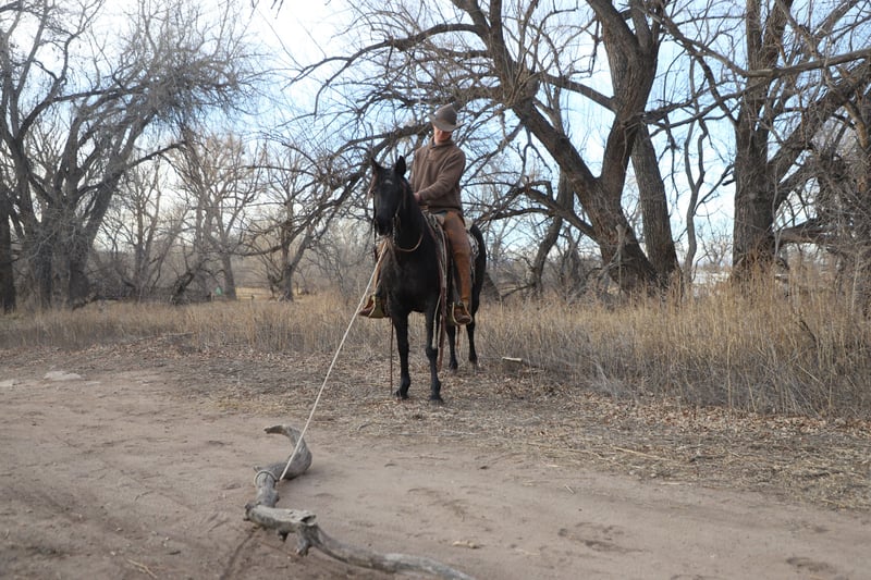 "AVAILABLE ON ONLINE HORSE AUCTION AT www DOT MagicHorseAuction DOT com BIDDING OPEN NOW thru TUESDAY | MARCH 3RD! BUY IT NOW AVAILABLE! *Final price will be determined on auction site* CONSIGNOR CONTACT INFO:Oly Edmiston #970-556-4820 LOCATION: COLORADO" Midnight is a good natured blue roan quarter pony mare. At nine years old, she is prime age. She has been a favorite here on our ranch, calving and moving cows. She is a quiet and confident trail partner in the mountains and on municipal trails. Midnight is smooth in all her gaits and happy to lead, follow, or be anywhere in between on the trail. She rides out alone on the trail or checking cows, and has done so with each of our older kids aged 9, 12, and 14. Midnight has drug calves at brandings and roped calves for tagging and doctoring. She has also head and heeled yearlings. Midnight is in on consignment with us. Her owners are selling her to cover medical bills. They said that midnight is a very fine buggy mare and good to drive anywhere. We have not had the occasion to hitch her but may have video before the sale is over (weather permitting). Midnight gets along well in the herd and is vet and farrier approved. She loads and hauls well, and backs out of the trailer. Shipping is available. Call for more information or to set up a time to meet her at home near Nunn, CO. 970-556-4820