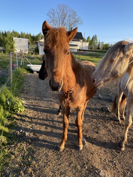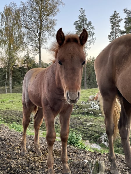 Geboren im Juli 2024, ein mutiger und neugieriger Hengstfohlen mit viel Gang. Geimpft und am Halfter trainiert, folgt er, wenn man ihn führt. Wird ein großartiger Freund, wenn er groß ist.