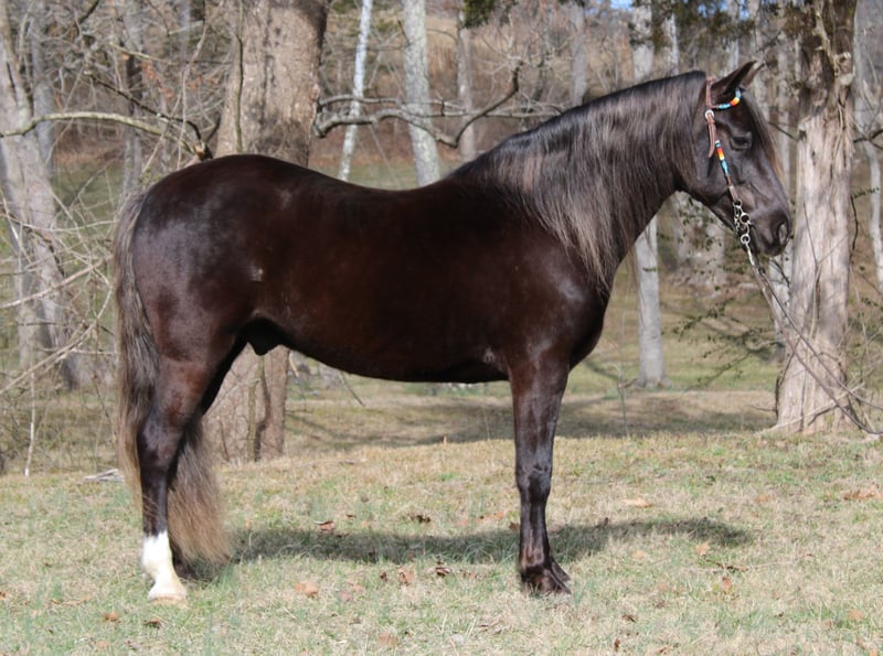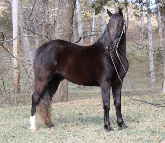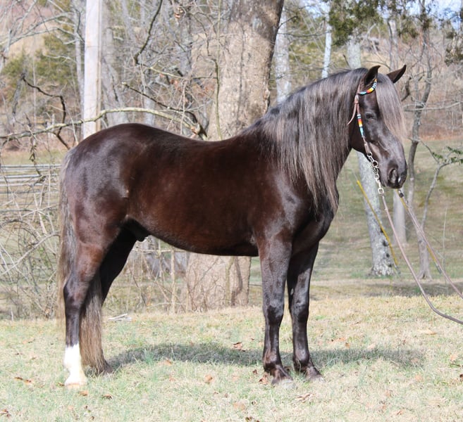 "AVAILABLE ON ONLINE HORSE AUCTION AT www DOT MagicHorseAuction DOT com BIDDING OPEN NOW thru TUESDAY | November 25TH! - BUY IT NOW AVAILABLE! *Final price will be determined on auction site* CONSIGNOR CONTACT INFO: Celeste Dashiell 215-460-8105 LOCATION: Kintnersville, PA * The Honky Tonk Man * Everyone: I would love to introduce you to The Honky Tonk Man or as we call him Desi! Desi is a gorgeous 10 year old 14.3hh Registered Chocolate Rocky Mountain gelding. He has been ridden by kids on numerous trails and fun shows in KY, TN, and VA. Desi is a friendly boy, meet you at the gate personality. Likes to be groomed and loves attention. Easy to clip and bathe. Great for the farrier. Easy to saddle and bridle. Stands dead still to be mounted and will side step over to mounting block. Walks off slow and easy after being mounted. Desi is super good gaited and a ball of fun to ride. Has a great canter as well. He is a forward moving horse but a very controllable forward moving horse. He is an outstanding trail horse. He will go wherever you point him without hesitation. Crosses all types of water, slippery rocks and fallen trees. It doesn’t get to rough for him. Wildlife and livestock safe. Great in traffic or busy environments. This is a very nice horse that will make anyone very happy to be around. He’s got it all looks, gait, brains and the perfect size. Desi had one owner from the time he was a yearling to 9 years old. He was sold due to the kids getting into barrel racing. Desi had a tune up in training for 3 months before I purchased him in March of 2025. In the last four months he has not been ridden consistently but is the same horse given some time off. Reluctantly, we need to find him a new home due to personal life circumstances. If you are interested in Desi or would like to set up a time for a test ride please feel free to call or text me with any questions. 215-460-8105