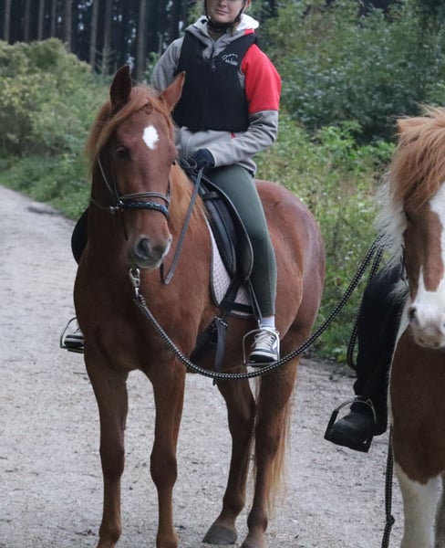 Jonge, mooie Rockystute geïmporteerd als jaarling, met een zeer vriendelijk, zacht karakter en een bijzonder goede gangveranlaging (ze toont zowel een taktvaste, vloeiende naturel Tölt als zeer goede basisgangen op de wei). Ze kent zowel omgang in een kleine groep in de paddock als een box met dagelijks buiten lopen en voelt zich in beide huisvestingsvormen op haar gemak. In onze kudde staat ze in het midden van de rangorde. Ze is goed bekendgemaakt met verschillende omgangsituaties – alles wat nodig is voor het dagelijks contact, evenals diverse desensibilisatieoefeningen met zeilen, paraplu’s, ballen en meer. De afgelopen 1,5 maand is ze onder het zadel gereden, waarbij gewerkt is aan de eerste basis onder het zadel, maar ook aan longeerlijnen, dubbel longeeren en het lopen als handpaard in de hal, op de rijbaan en in het terrein. Ze was daarbij altijd gemotiveerd en zeer positief. Sinds kort is ze weer thuis en is ze klaar om samen met haar vertrouwenspersoon de volgende stappen te zetten. Voor serieuze geïnteresseerden nemen we graag de tijd voor een uitgebreid kennismakingsgesprek – graag afspraak maken. PSSM 1 N/N, geen Silbergen