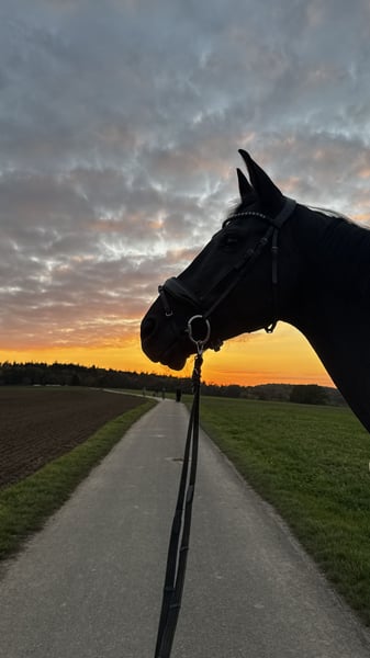Braver 12 jähriger Wallach, 180 cm groß sucht neuen Platz als Freizeitpferd. Kissing Spines Befund liegt vor - ist beim Kauf trotz AKU nicht aufgefallen. Zufallsbefund. Traumpferd im Umgang. Voll reitbar mit Go bei gutem und gesunderhaltendem Reiten und sicherem Reiter. Kein Kopf runter und Genick eng sondern reelles Vörwärts Abwärts und dressurliche Arbeit. Unterstützend funktioniert bei uns sinnvolle Hand und Bodenarbeit als Ergänzung und longieren am Kappzaum ohne Ausbinder. Geht super ins Gelände und macht täglich einfach nur Spaß! Bilder und Berichte können eingesehen werden! Bitte ERNSTHAFTE Anfragen mit Infos zu einem selbst und Vorstellungen zu dem was man sucht schicken und keine „Noch zu haben“ anfragen. Kann mit Sattel und Zubehör für 5000Euro ausziehen.
