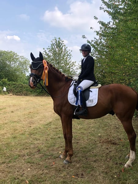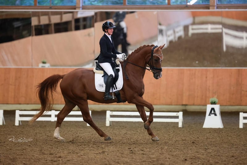 Due to time constraints, a stunning Rhineland gelding born in 2011 is for sale. He stands at 172 cm and draws attention with his impressive expression and strikingly colorful blaze. Quentin is a very likable and lively gelding, who is pleasantly sensitive and reliable in his training. He is trained up to the S** level, with the ability to perform Pi and Pa in training as well. Over the last two years, he has achieved placements from A* to S** with amateurs and complete dressage newcomers. His trot and canter are well above average. He can be ridden easily by small children and also handles small jumps or trail rides with anxious riders. However, he should have an experienced companion by his side who can provide him with enough calmness in various situations, as he can be a bit spooky at times (no bucking or similar! Just a little startled!). I can envision him as a teacher in the A to M level, or as a partner for relaxed trail rides and excellent, high-level dressage work at home. Quentin is manageable in every situation. Currently, he spends his days in a mixed herd in the pasture but also needs time alone at night in his box. He is regularly vaccinated and dewormed. Current X-rays are available. Due to a finding, he is being sold well below his value. However, this has never limited him, and he is in normal training. Here, quality takes precedence over price! I hope to find him a "forever home." If you are interested or would like more information, please feel free to contact me at 01782397644!