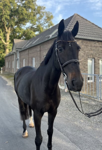 For sale is a 2012-born mare by Cassini Boy Junior x FAN Holland (formerly Holland). Breeder: Otmar Eckermann. Mother: S successful under Katrin Eckermann. Father: 150cm international. The mare is absolutely well-behaved and easy to handle, which makes her a great option for beginners, children, or as a family horse. She is always manageable and reliable in the field, whether alone or with company. She is herd-compatible, good with the farrier and loading, and has no vices. A clinical vet check from 11/2023 is available. Further information and pictures/videos will be provided upon request. Please contact exclusively via WhatsApp at: 01733946019.