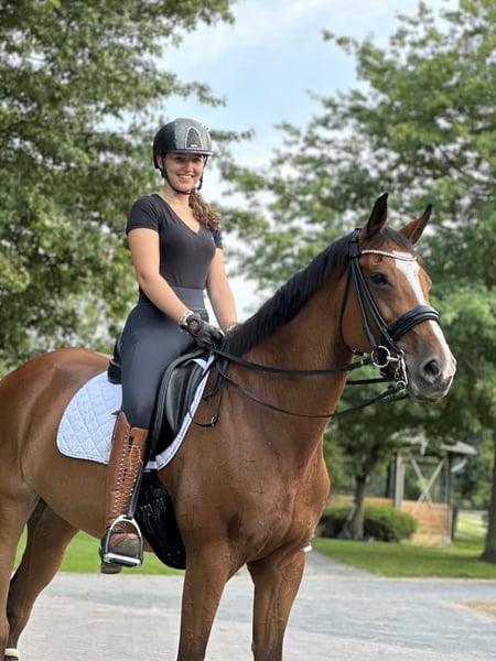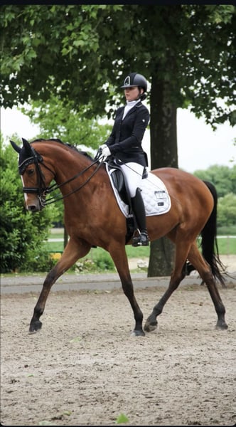 Bildschöne erfahrene M* platzierte Dressurstute mit Herz und Qualität sucht 5⭐️-Zuhause. Schweren Herzens suchen wir für unsere 15-jährige Rheinländer Stute Mission Impossible 6, genannt Missy, ein neues Zuhause. Missy ist 1,71 m groß und seit August 2019 in unserem Besitz. Sie kam direkt vom Züchter zu uns und wurde kontinuierlich und schonend mit Trainerbegleitung von Dressur Klasse A bis zur Klasse M ausgebildet. Auf Turnieren ist Missy bis M* Dressur platziert. Sie überzeugt durch ihre feine Rittigkeit, Sensibilität und Arbeitsbereitschaft. Sie schätzt eine einfühlsame Reiterhand und begeistert dann mit viel Qualität und Lernbereitschaft. Damit ist sie ideal für ambitionierte Reiterinnen oder Reiter, die sich weiterentwickeln und von einem gut ausgebildeten Pferd lernen möchten. Auch über das Dressurviereck hinaus ist sie vielseitig: - Springen bis Klasse A gelaufen und mit Freude dabei - Geht gerne ins Gelände - Verträglich mit anderen Pferden Sie hat alle erforderlichen Turnierimpfungen und wird regelmäßig dem Schmied, Physio und Zahnarzt vorgestellt. Die Abgabe erfolgt ausschließlich, weil ich mich reiterlich weiterentwickeln möchte. Missy wird nur in allerbeste und passende Hände abgegeben – wir wünschen uns für sie ein echtes 5-Sterne-Zuhause. Sie soll ihrer nächsten Reiterin oder ihrem nächsten Reiter genauso viel Freude bereiten, wie sie mir jeden Tag schenkt. Bei ernsthaftem Interesse freuen wir uns über eine persönliche Nachricht/Anruf und ein Kennenlernen.