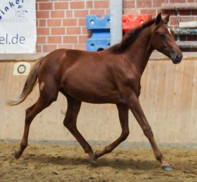 Sexe : Jument Race : Cheval de selle rhénan Origine : Quantensprung x Quaside MD de DSP Quasi Gold MD Âge : née le 01.04.2024 Jument avec une excellente lignée en dressage Elle possède 3 bonnes allures Elle connaît l'ABC des poulains et est sociable avec les humains Elle se laisse mener et se met facilement le licol au pré. Pour plus d'informations, contactez le numéro 0176 62495567.