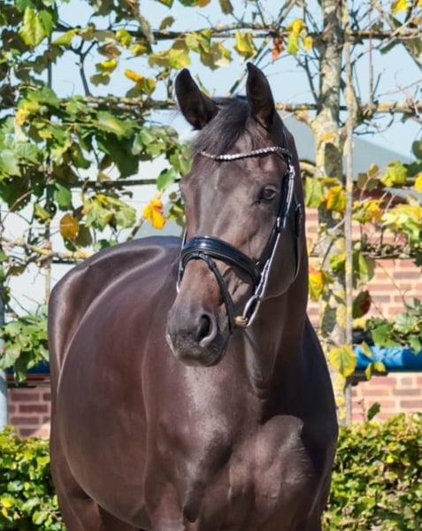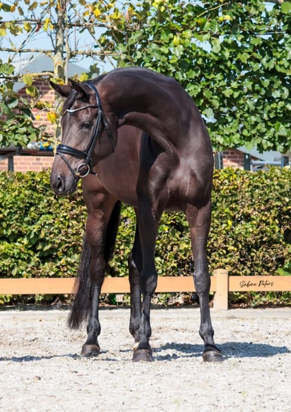 Demira, a mare born in 2017 with a highly interesting pedigree: Westphalian line 398. The direct line traces back to the DLG champion mare Radina, who is also a full sister to the highly successful stallion Renoir I in Westphalia. Other licensed stallions include Renoir II, Rockland, For Emotion, Forzamento, Damenstolz I and II. From this lineage come highly successful mares with outstanding mare performance tests, including the Bundeschampion 6-year-old Samira from 2007, who scored 9.7 and was the sensation of the BC that year. From this line, there are dressage and show jumping horses successful up to S-level, and from the mother Sadira, a son who has competed up to S-level. The sire is the internationally successful Grand Prix stallion Delatio by De Niro x Rubinstein. A pedigree filled with Grand Prix and stamp stallions, as well as the desired connection to show jumping blood through Cor de la Bryère. Sale on behalf of the breeder. For more information, feel free to contact by phone or WhatsApp at 0049172-1743163. Location: 5845 EJ Sint Anthonis