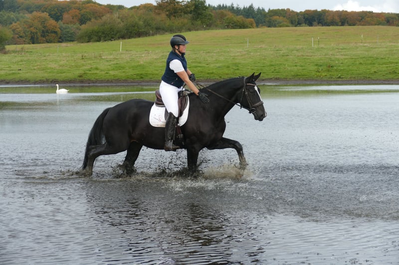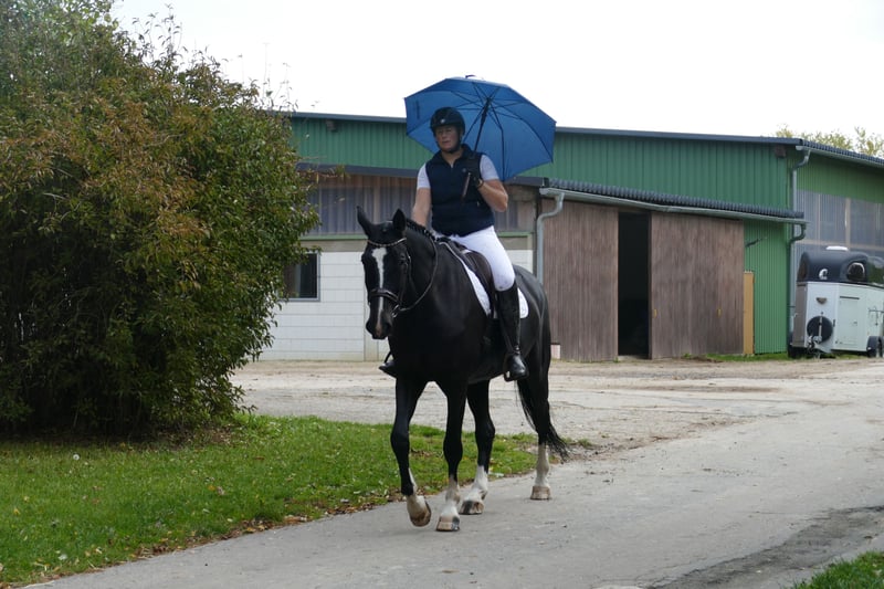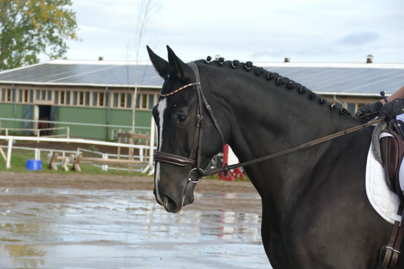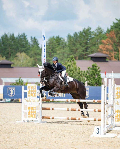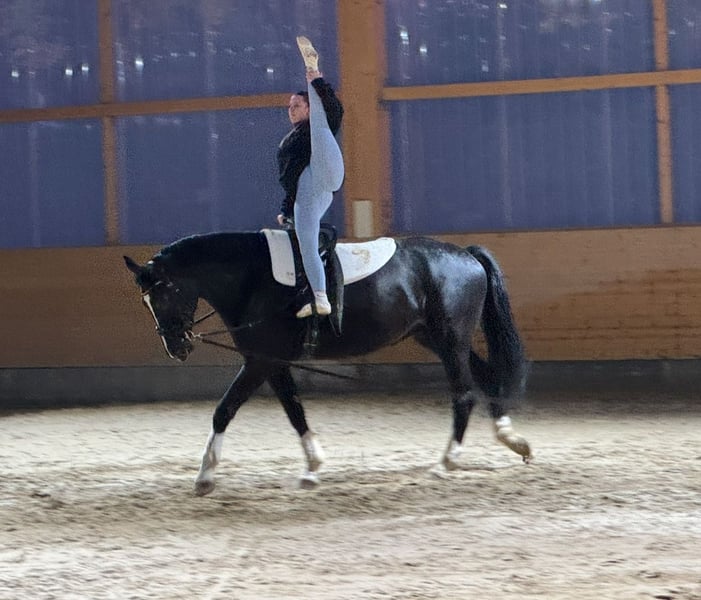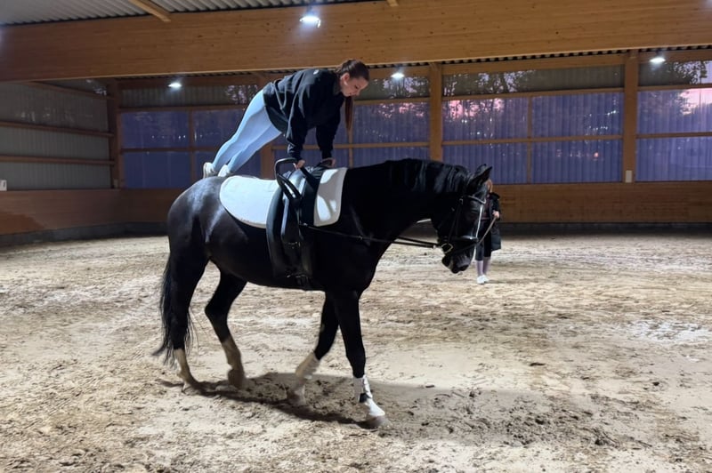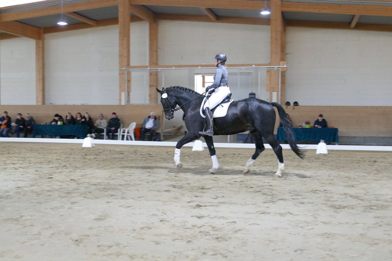 Lorant: - Charismatic black stallion of the modern riding horse type - With four white markings and a blaze - Light in movement and easy to handle - Featuring three natural gaits and experience in jumping courses - Provides a confident riding experience, even for less experienced riders