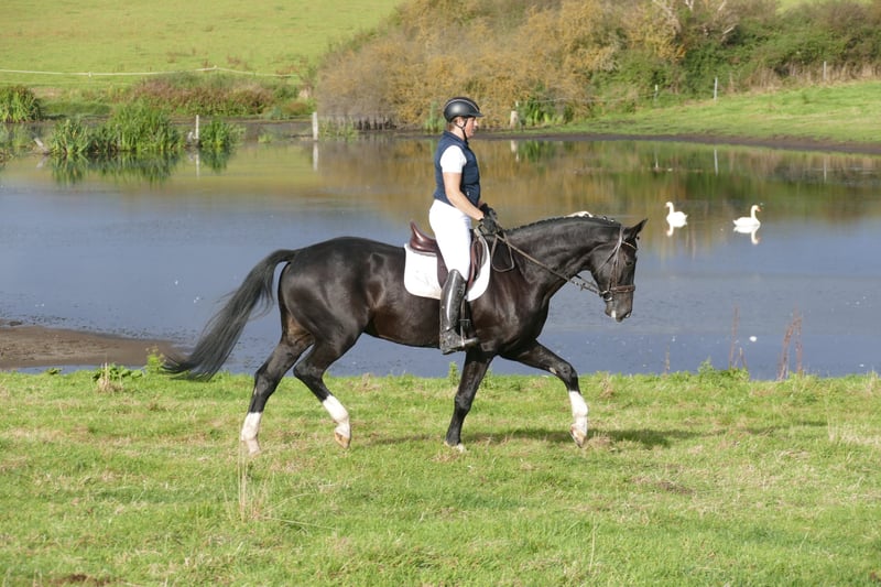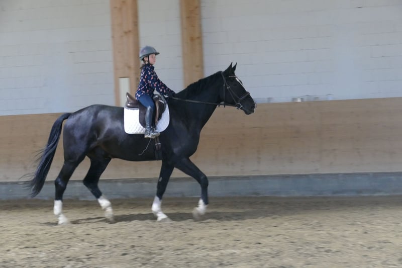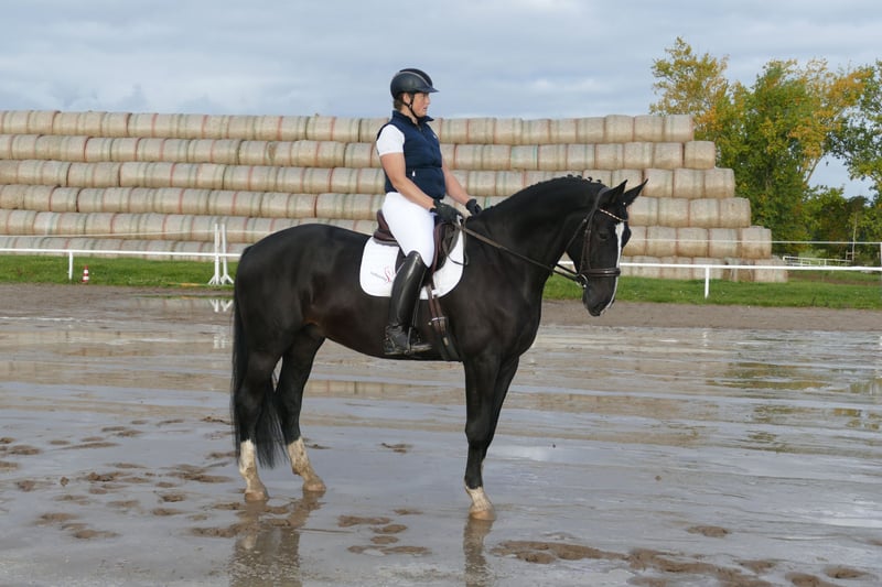 Lorant: - Typvoller Rappe im modernen Reitpferdetyp - Mit 4 mal Weiß und Blesse - Leichtrittig und angenehm in der Hand - mit drei reellen Grundgangarten sowie Routine im Parcour - gibt auch dem weniger erfahrenen Reiter ein sicheres Reitgefühl