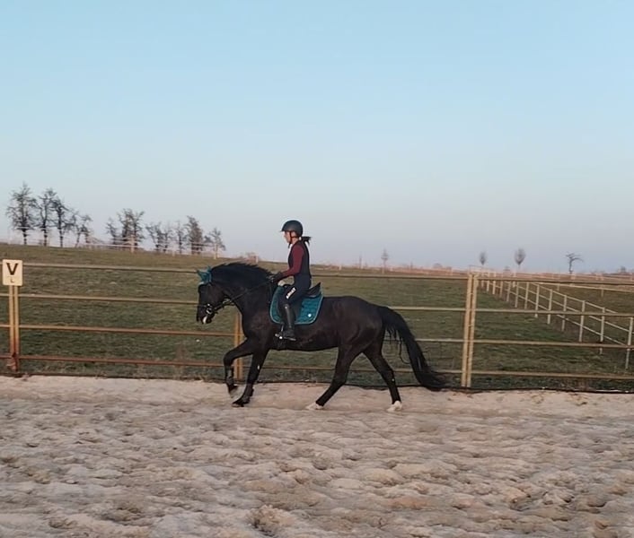 Lino is a 6-year-old Saxon-Thuringian Heavy Warmblood with a sportive conformation. **NOT suitable for beginners!!** He was lightly backed at the age of 4/5. He moves in all three basic gaits: walk, trot, and canter. He is familiar with: - Rider’s weight (not currently in training, but will be reintroduced) - Lunging - Double lunge - Free jumping - Trail riding - Trailer transport In handling, Lino is well-behaved but occasionally tests boundaries, as is typical for a young horse. :) He has already jumped small courses (60 to 100 cm) under saddle but has not been further trained in jumping. We have taken him out on trail rides five times, and he was well-behaved, at least as expected for a young horse (he has a good, quick walk on trails but remains manageable). He loads reliably onto all types of trailers and transports, regardless of environment. He stands calmly at the grooming and washing stations, as well as at the blacksmith. He is shod with full steel shoes on all four feet. He is familiar with clipping and stands quietly during the process. He comes with full papers. Due to the late start in riding and limited time I had for him, he still doesn’t know much under saddle and therefore: **NOT suitable for beginners!!** He requires experienced, professional handling, a rider who is calm and provides clear aids, not someone nervous or hesitant. An empathetic rider is essential. He has been standing idle for a while because I no longer have the time for him, and I have now decided to sell him. He is eager to work and learns very quickly. He will only go to experienced hands. If you are looking for a promising young horse that can be further refined, here is a great opportunity to purchase a talented horse at a good price. He is healthy and free of any illnesses. He will be sold with a suitable saddle and all his belongings, including bridle, blankets, saddle pads, etc. Please only contact me if you are genuinely interested. To prevent riding tourism, a small fee of €25 will be charged for the trial ride, which will be deducted from the purchase price. According to the new regulations, trial riding is at your own risk and liability; no liability is accepted. You can reach me by email or phone: 0152 04417335, from 8 am to 8 pm. Best regards