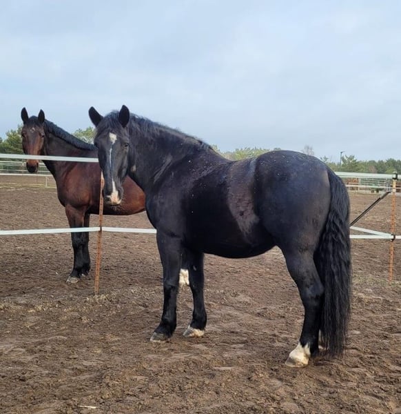 Our nearly 10-year-old Odin has been with us since July 2019. Due to health issues, he can no longer be used as a police horse after five years of service. Odin is a heavy Polish Warmblood (Slaska) with a strong build, standing approximately 16.1 hands at the withers. Since September 2025, Odin has exhibited a diffuse and irregular gait, both in the hind and front limbs. An MRI scan revealed several findings. The most significant issues are located at the right hip and the splint bones in the left front leg. As a result, Odin's gait is occasionally unsteady or slightly lame, depending on his daily condition. When allowed free movement on pasture or paddock, he shows no pain and does not require veterinary treatment for these findings. Therapeutic joint treatments could temporarily keep him sound and rideable. Due to his health impairments, Odin can no longer serve as a working or service horse. We recommend a future life as a pasture or companion horse, with the possibility of free movement. Odin is compatible with another gelding in the paddock and has orthopedic shoeing on his front hooves. For further information about Odin, please contact the stable manager Doreen Kiekebusch or the riding instructors during office hours (8:00 a.m. to 4:00 p.m.) at: Phone: +49 3329 699-114 / -112 / -113. All medical reports will be provided upon request for interested buyers. The horse will only be handed over to suitable applicants with experience in handling young horses. Proper housing and care must be demonstrated prior to transfer, with proof if necessary. Any transfer of ownership through sale, donation, or long-term loan to third parties is not desired and does not align with our principles regarding the future use of former service horses. The decision to rehome Odin will not be made through an auction or based on the highest bid.