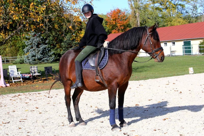 Leonardo is a 9-year-old, 16.1 hh gelding. He is a cuddly horse with a very gentle and friendly character. The gelding is perfect for hacking; in the arena, he is always attentive, and he is friendly and reliable in handling. He has no vices, and he is not bucking or rearing. He stands calmly for grooming, leading, and farrier work, and loading or traveling is no problem. He is always manageable even for children. He is also very well-behaved in the field, willing to participate in everything, and motivated. Leo is compatible with all other horses.