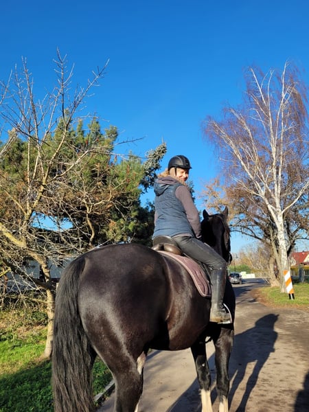 Eddi è nato, cresciuto e addestrato da me. Non è mai stato aggressivo, lavora con entusiasmo sia in maneggio che in passeggiata. Per motivi personali, lo affido a una famiglia con un ambiente di prima classe. La qualità viene prima del prezzo. È sempre stato vaccinato e sverminato, e non ha mai avuto problemi di salute. È un vero amico e un cavallo ideale per il tempo libero. È stato addestrato secondo il metodo Parelli in maneggio, quindi mostra volentieri anche qualche piccolo trucco. Nel dressage, il suo potenziale è ancora tutto da scoprire. La madre non ha documenti di genealogia, mentre il padre è Empire, proveniente dalla scuderia Käferburg ad Arnstadt.
