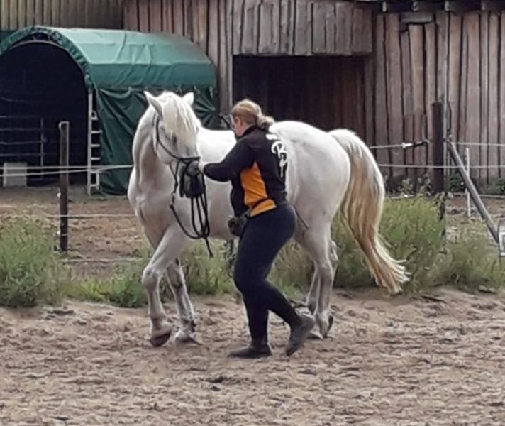 Zum Verkauf steht ein 17 jähriger schwerer Warmblut Wallach. Cyprys ist 1,64cm groß, Barhufer und ein Gewichtsträger. Er hat eine Ausbildung im Horsemanship, wird Dressurmäßig (A Niveau) aus dem Sattel und vom Boden gearbeitet. Er nimmt gern an der Stangengymnastik teil und macht auch gerne mal einen kleinen Sprung. Cyprys kennt es mit oder ohne Gebiss geritten zu werden. Auch das Reiten mit dem Halsring kennt er und er liebt Trailhindernisse, die er auch ohne Halfter und Seil mit seinem Menschen bewältigt. Im Gelände geht er in der Gruppe an jeder Stelle und gibt unsicheren Pferden Sicherheit. Auch allein ist er im Gelände sehr gechillt. Cyprys steht bei mir in Robusthaltung im Offenstall, im Sommer mit Wiese. Boxenhaltung mit tagsüber Paddock kennt er auch. Cyprys ist kein Pferd für Anfänger, unsichere Menschen oder Kinder. Er ist sehr stark in der Kommunikation und braucht einen sicheren Menschen an seiner Seite. Ich nehme mir gern Zeit, damit du Cyprys ausgiebig kennenlernen und auch Probereiten kannst. Dafür erlaube ich mir 30€ zu nehmen, die beim Kauf natürlich verrechnet werden. Wenn du Interesse an Cyprys hast, freue ich mich über eine kurze Vorstellung von dir und der zukünftigen Haltungsform. Ich bin an einem guten Zuhause für Cyprys interessiert und verkaufe nicht an Händler oder Menschen, wo ich den Eindruck habe, dass er es dort nicht gut haben wird.