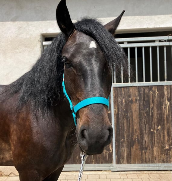 Brego – young, confident, and versatile gelding looking for his person! We present our charming gelding Brego – 3.5 years old, with a big heart and great character. This approximately 1.55 m tall cuddle bug is extremely reliable and uncomplicated in daily handling. Brego goes nicely in all basic gaits in the arena and on trails – both in company and alone. Traffic or typical farm noises, such as tractors and other animals, are no problem for him. He is very social, compatible with other horses, and feels comfortable both in box stalls and in open stabling. Transport, farrier, or veterinarian visits pose no difficulties for him – Brego is a true model of patience and cooperation. If you are looking for a young, versatile, and calm gelding with a great character, Brego could be the ideal companion for you! Location: approximately 70 km from Görlitz, in Poland Transport: possible Contact us to meet Brego in person and fall in love with him immediately!
