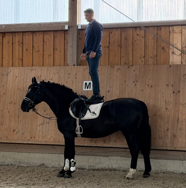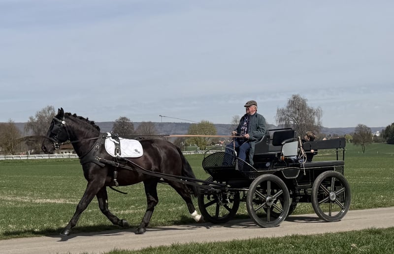 Traumschöner Vertreter der Rasse schwerer Warmblüter, er ist schon sehr gut ein ,- zweispännig gefahren sowie im Geländer und in der Halle geritten . Durch seine gelassene und ausgeglichene Art bestimmt auch für der bevorstehenden Blutritt in Weingarten geeignet