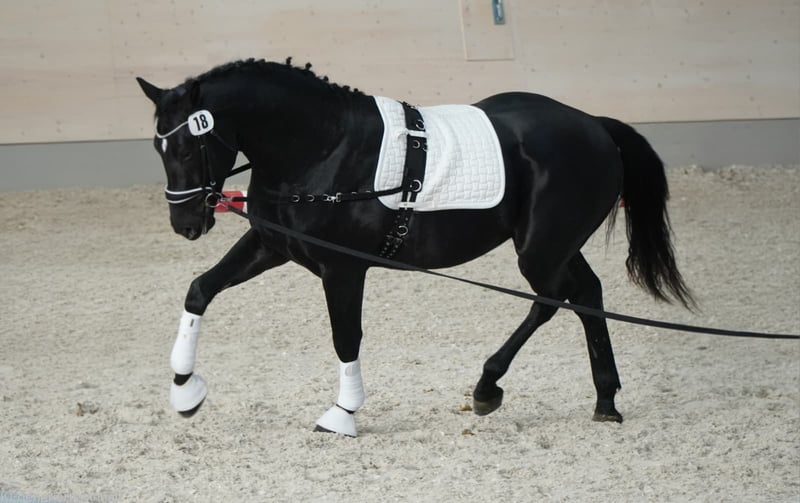 A strong sport-type Warmblood gelding is being offered on behalf of an owner – ideal for the advanced leisure rider or driver! This impressive black stallion was born in 2023. His dam is the state premium mare Zaira, bred to the Thoroughbred Rock of Romance xx for refinement. Romeo stands at 166 cm (16.1 hh), making him the perfect size for a variety of leisure activities. He was presented for the Heavy Warmblood licensing in November. Intelligent, eager to perform, and always striving to do everything correctly, he requires an experienced horseperson who can provide him with confidence and security in handling. He has been lunged during the licensing process and has developed good musculature. He also behaved well with a saddle afterward, so he was tested with rider weight. If you are interested or have further questions, please feel free to contact me. I would be happy to arrange a viewing and a meet-and-greet!