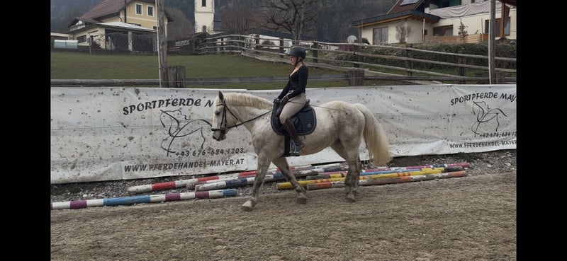 Elegante Apfelschimmel-Stute – Vielseitiges Warmblut für die Freizeit Diese bezaubernde Warmblut-Stute wurde im Jahr 2016 geboren und besticht durch ihre elegante Erscheinung sowie ihr freundliches Wesen. Mit einem Stockmaß von 158 cm bietet sie die perfekte Größe für einen vielseitigen Einsatz im Freizeitbereich. Die Stute ist ein echtes Schweres Warmblut, das durch ihre kräftige Konstitution und ihre angenehme Grundgangart überzeugt. Sie ist gut geritten, zuverlässig und zeigt sich im Umgang stets freundlich und gelassen. Dank ihrer ausgeglichenen Natur eignet sie sich ideal für Reiter, die ein zuverlässiges Pferd für ausgedehnte Ausritte, Spaziergänge und entspannte Freizeitstunden suchen. Der Apfelschimmel besticht durch sein edles Erscheinungsbild und seine charmante Ausstrahlung. Sie ist gesund, gepflegt und bereit, ihre neue Familie mit Freude zu begleiten. Ein vielseitiges Freizeitpferd, das durch sein angenehmes Temperament und seine solide Grundausbildung überzeugt – perfekt für Reiter, die ein zuverlässiges und liebenswertes Pferd suchen.