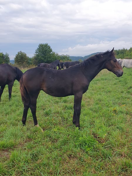 Verkaufe ein schickes Stutfohlen. Sehr selbstbewusst, Endmass ca.167 cm. Volle Abstammung, aufgezogen auf weitläufigen Wiesen.