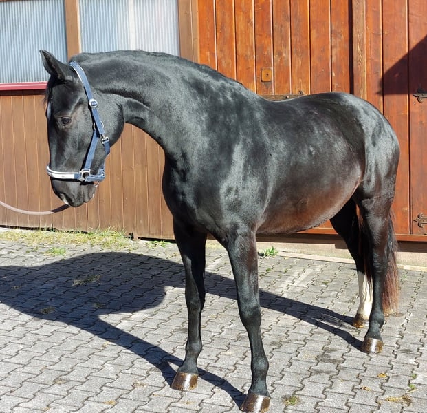 Very friendly young mare with good basic manners and a pleasant character. Born in March 2023, she will be three years old in spring. Not yet trained for riding or driving. As a foal, she often accompanied her mother in a team. Her sire is the stallion Ehrenwort. Her dam is the mare Semona by Löwenherz.