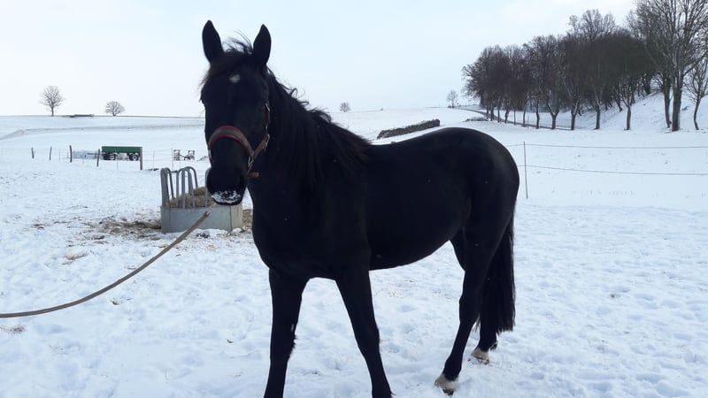 Olga ist eine 2 1/2 jährige schwere Warmblutstute, die bei uns im familiären und altersgemischten Herdenverband aufwächst. Sie kennt führen, anbinden, Hufe geben und Anhänger fahren. Mutter: Stattsprämienstute** ,HM,PrS*,LP und Mutter vom gekörten Hengst: Efeu Vater:Cadett Royal - Muttervater: Geron, Egner Stockmaß zur Zeit ca. 157cm, Endmaß ca. 160cm Geboren 2023 Ausbildungsstand: roh Olga ist kerngesund, Impfstatus aktuell Ihre Zukunft sehe ich in der Zucht (Mutter Hengstmutter), als Freizeit- bzw. Gespannpferd Gern telefonisch oder via WhatsApp melden unter 0172 3795327