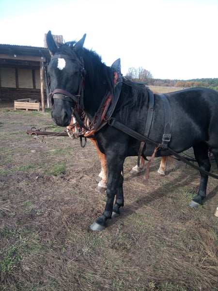 Junge, hübsche 4-jährige Stute. Sicher im 2-Spänner gefahren. Eingeritten, Geländesicher, Schmiede- und Verladefromm.