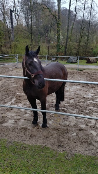 Auf der Suche nach einem Kinderpony, trafen wir auf Ellie, die mit allem was ihr zur Verfügung stand darum bat, aufgenommen und versorgt zu werden. Mit knapp vier Jahren war ihr Gesundheitszustand bei unserer ersten Begegnung schlecht. Nach Gesundheitschecks und diversen längst überfälligen Behandlungen der Zähne, Hufe, einer Stabilisierung des Darms und einer kontrollierten Gewichtszunahme mit gleichzeitigen Muskelaufbau, geht es Ellie nun, ein Jahr später super gut. Sie ist bei vollen Kräften und bereit die Welt zu entdecken. Dabei wünscht sie sich einen zuverlässigen und selbstsicheren Menschen an ihrer Seite und am liebsten ab und zu eine Orientierungsmöglichkeit an einem souveränen Zweitpferd. Ellie liebt Bodenarbeit, wird gerne geritten und überhaupt mag sie Beschäftigung für Körper und Geist. Von ihrem Ursprung und ihrer Ausstattung kann sie sicherlich eine Kutsche ziehen und eignet sich für Arbeiten in der Landwirtschaft. Beides müsste ihr allerdings jemand beibringen. Ihr breiter Rücken und ihre Gangarten eignen sich sicherlich auch zum Voltigieren. Die Ausdauer dafür und eine Trittsicherheit müsste sie noch ausbauen. Am besten wäre sicherlich ein vielfältiges Leben bei einer Familie auf dem Land, wo Ellie verschiedenen Beschäftigungen und Aufgaben mit ihren Bezugspersonen nachgehen könnte. Sie ist ein Herzenspferd, auf der Suche nach einem Dauerhaften zu Hause. Als Kinderpony für kleine Kinder eignet sie sich aufgrund ihrer Größe von 169cm und einem Gewicht von 710 Kg, nicht. Aus diesem Grund möchten wir Ellie, nun gesund und munter, gerne ein vielfältiges und Pferdegerechtes Leben bei Menschen ermöglichen, die richtig Lust haben sie kennenzulernen und ihr noch viele tolle Dinge beibringen wollen. Aktuell wird sie in Schritt, Trab und Galopp geritten, kennt Spaziergänge, Lingenarbeit, ist Verladefromm, Schmied wird geübt. Geimpft, entwurmt, Zähne sind jetzt wieder dran. Platz vor Preis. Ausführliches Kennenlernen absolut erwünscht.