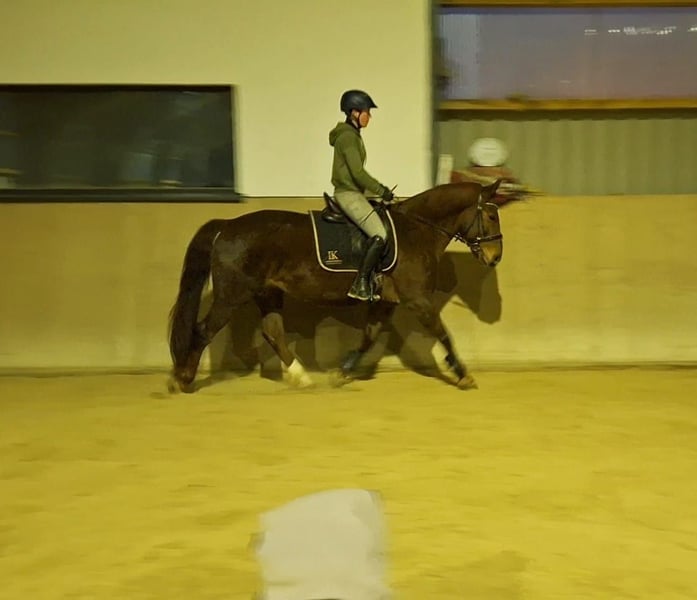 Ich verkaufe eine 9-jährige Fuchsstute im schweren Typ stehend. Sie ist 155 cm groß. Wir haben sie als kindergeeignetes Anfänger-Familienpferd gekauft. Nach 5 gemeinsamen Monaten mussten wir feststellen, dass ihr dieser Job keine Freude macht. Sie hat eine gute Rittigkeit und ist fein am Schenkel. Sie benötigt einen Reiter, der ihr klare Anweisungen und Sicherheit gibt. Dann bekommt man ein Pferd, dass motiviert mitarbeitet, egal ob Dressur-/ oder Springaufgaben. Sie ist mit Stuten verträglich, artig beim Schmied und Tierarzt. Sie wurde regelmäßig geimpft und entwurmt. Im Juli osteopathisch durchgecheckt und im August Zähne frisch gemacht. Videos können bei Interesse geschickt werden. Passendes Zubehör (u.a. Maß-Dressursattel) kann gegen Aufpreis mit erworben werden. Ich wünsche mir für sie eine feste Bezugsperson, die mit ihr zusammen wachsen möchte.