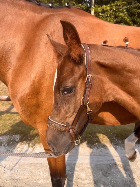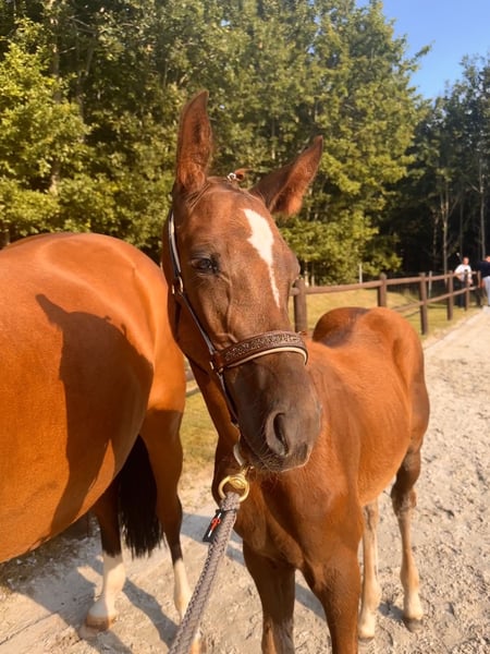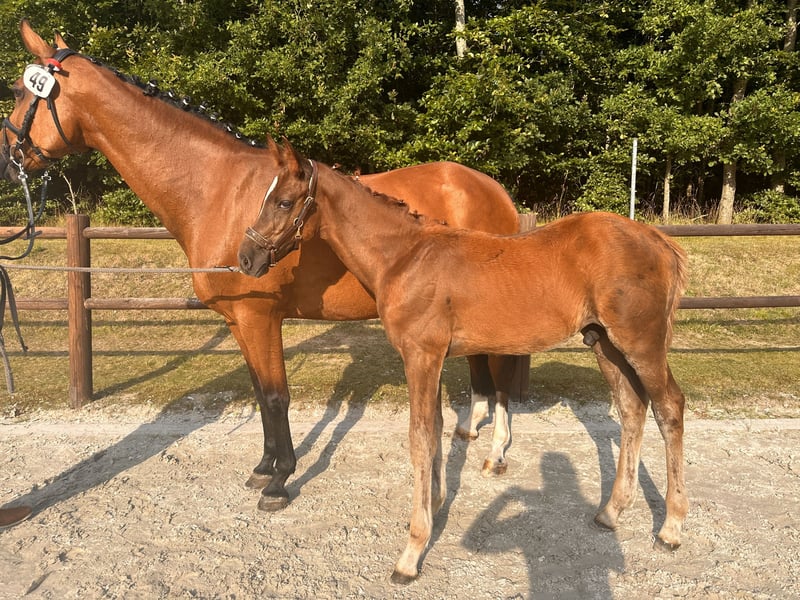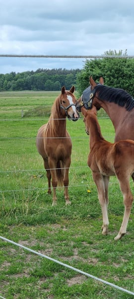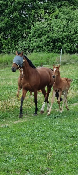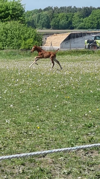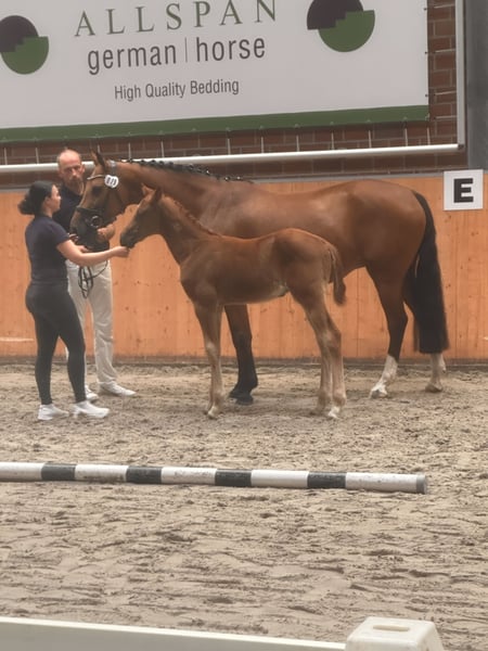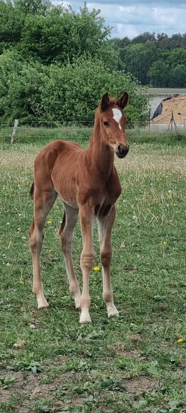 Elite Premium Foal 04/2025 🧡 Chestnut | Sport-oriented pedigree with jumping emphasis This young stallion impresses with a strong build, long legs, and a modern appearance. He features a powerful hind leg and an uphill, elastic canter with plenty of expression — ideal qualities for competitive show jumping. Awarded the Elite Foal Premium. Raised in a herd environment, well-socialized, and easy to handle. Videos and further information available upon request via private message.