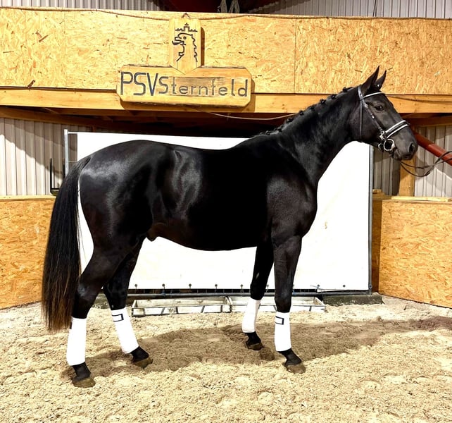 Typvoller Bewegungsstarker 3 jähriger Mecklenburger Junghengst, mit guten Charakter. Ist leicht angeritten und kennt Freispringen. Vater Galaxy ist der Prototyp eines modernen Dressurpferdes. Mit ganz viel Noblesse und Eleganz weiß er sich wie eine Feder zu bewegen. Vater Grand Galaxy Win entstammt der Kombination der Grand Prix-siegreichen Hengste Apache (E. Scholtens) und Jazz (K. Beckers). Er war Siegerhengst in Dänemark, als Fünfjähriger platzierter WM-Finalist in Ermelo und ist aktuell bis Intermédiaire II siegreich. Aus der Mutter, Don Argumente, gibt es aus der Anpaarung mit Royal Blend den bis S- Dressur erfolgreichen Wallach Rossignol. Für weitere Informationen oder einer Termin Vereinbarung zum Kennenlernen stehen wir Ihnen gerne zur Verfügung.